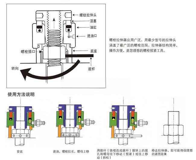 液壓螺栓連接作為一種高效、可靠的機(jī)械連接方式,在工業(yè)領(lǐng)域中得到了廣泛應(yīng)用。對于大尺寸螺栓的緊固和拆卸,液壓螺栓拉伸器成為了操作人員的得力助手。今天,我們就來詳細(xì)了解一下液壓螺栓拉伸器的工作原理和一些使用注意事項。